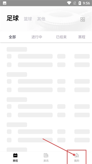 在包含【足球】【篮球】分类的赛事界面,点击底部的【我的】按钮,就能进入对应的个人中心页面进行后续操作。