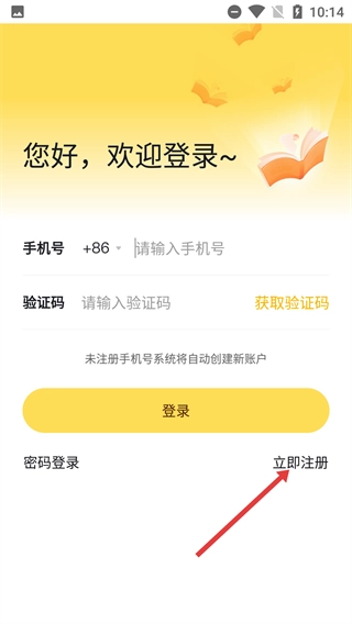 进入登录页面后,点击【立即注册】选项,即可切换到账号注册界面。