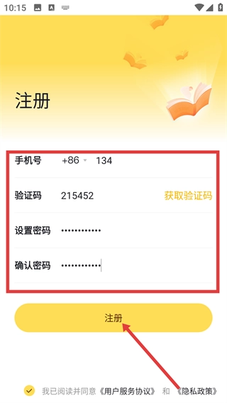 在注册页面,按顺序填写手机号、获取并输入验证码、设置密码、确认密码,勾选同意相关协议后,点击【注册】按钮即可完成账号注册。