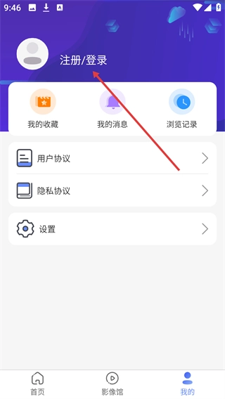 在“我的”页面找到并点击【注册/登录】按钮,进入对应的账号注册或登录页面,为后续完成账号相关操作做好准备。