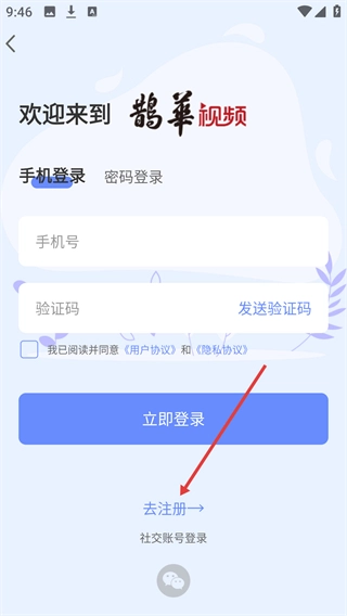 在登录界面选择【手机登录】的方式,接着点击【去注册】选项,就能进入注册信息填写页面。