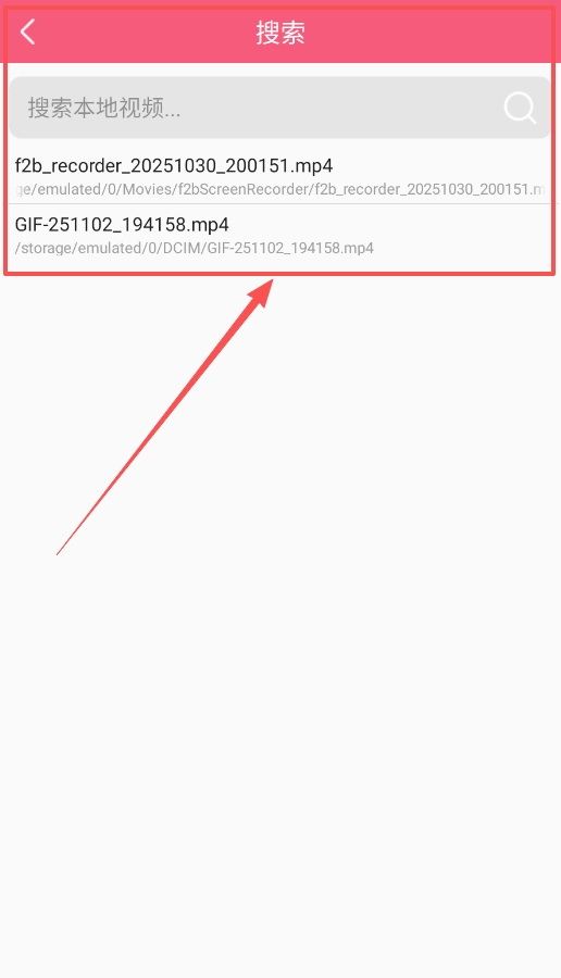 二、扫描结束后,本地视频会以列表的形式呈现,示例中类似f2b_recorder_20251030_200151.mp4这样的文件路径也会清晰地展示出来。