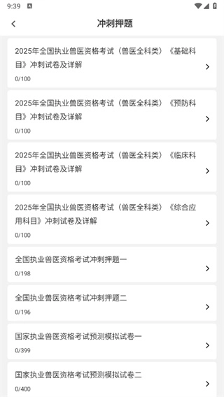 在兽医全科类首页找到模拟试题选项并点击,即可进入模拟试题页面。