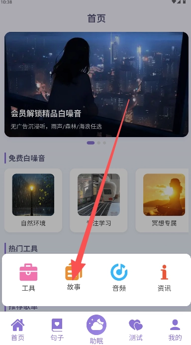 在良言首页底部选择“助眠”板块。