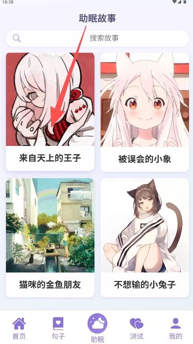 在助眠故事界面点击任意故事封面即可阅读。