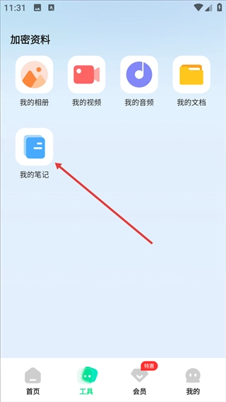 选择“我的笔记”选项,进入私密笔记页面。