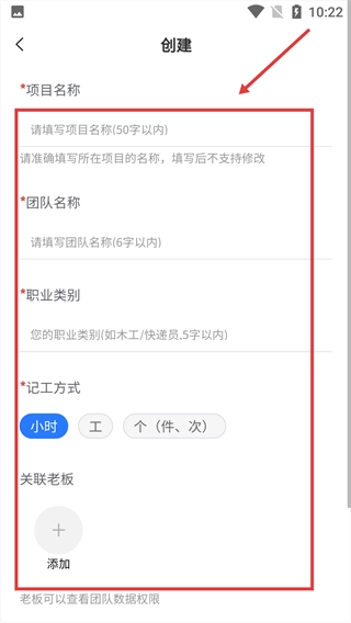 需要填写带*的必填项,像项目名称、团队名称、职业这类信息都包含在内。