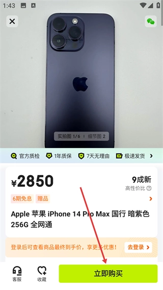 在商品详情页确认好相关信息后,点击【立即购买】按钮,即可进入该商品的下单与支付环节。