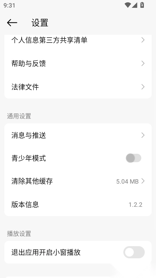 最后找到“播放设置”模块下方的“退出应用开启小窗播放”按钮滑动开关,将其打开即可。