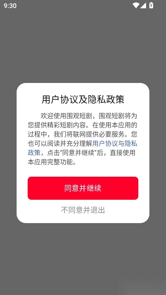 首先打开软件,阅读协议与隐私政策后,点击“同意并继续”按钮进入