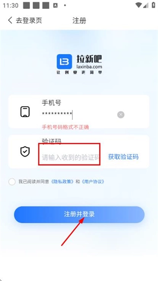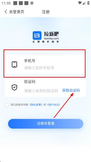 在拉新吧的登录页面,找到注册选项并点击,即可进入账号注册页面。