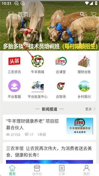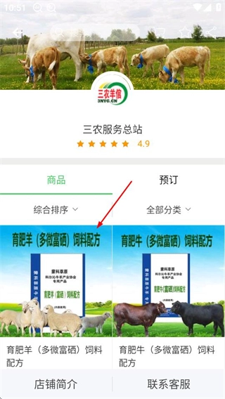 在三农羊倌的首页,找到并点击牛羊商城选项,即可进入商品列表页面。