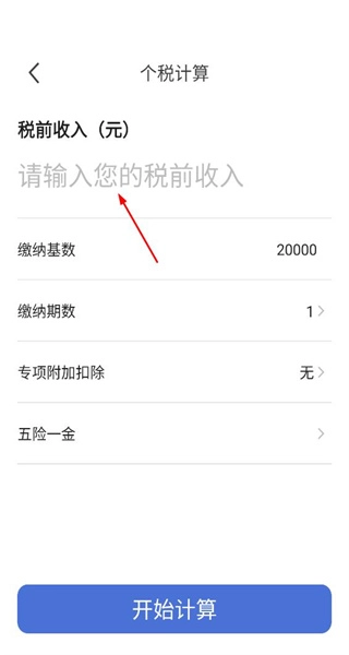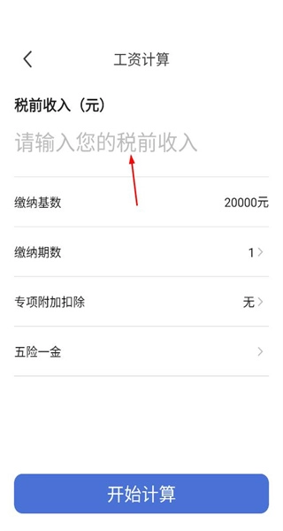 进入个人所得税计算界面,填写税前收入金额,确认缴纳基数等相关信息无误后,点击“开始计算”按钮,即可获取最终的计算结果。