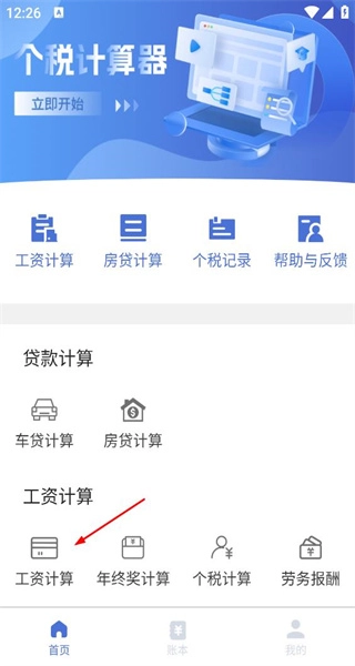 打开软件后,先浏览各个功能板块,接着点击工资计算选项,随后进入工资计算对应的操作页面。
