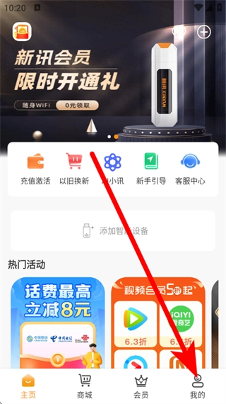 打开新讯应用,在主界面找到底部的“我的”按钮并点击,即可进入个人中心页面。