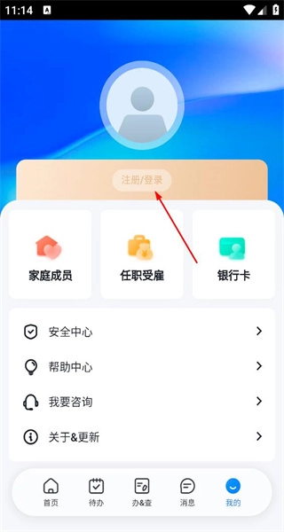 进入我的页面,找到注册登录按钮,点击该按钮,进入个人所得税的登录页面。