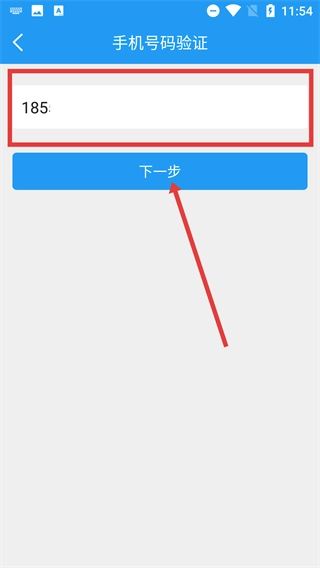 在【手机号码验证】页面,输入目标手机号后点击【下一步】按钮,即可进入注册流程的验证环节。