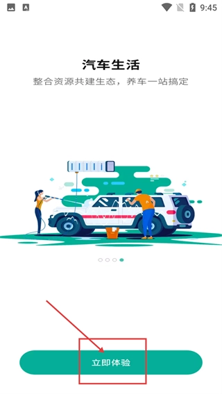进入【汽车生活】界面,该界面定位是整合各类资源的一站式养车服务平台,点击【立即体验】按钮后,就能进入应用的主功能页面。