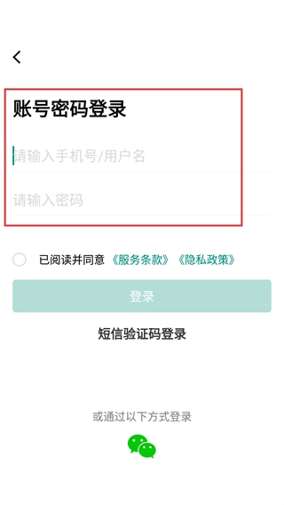 若选用【账号密码登录】的方式,需填写【手机号/用户名】以及对应的密码,勾选相关协议后,点击【登录】按钮即可完成账号登录。