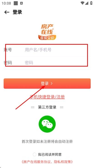 在登录界面输入手机号与密码,勾选相关协议后,点击登录按钮即可完成账号登录流程。