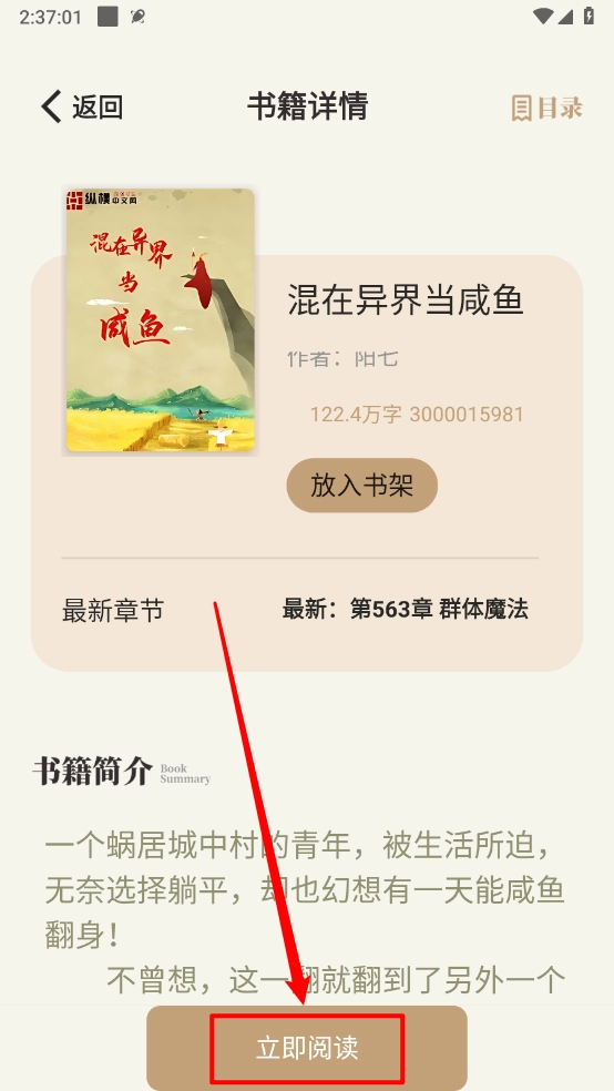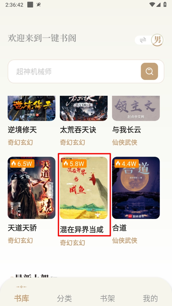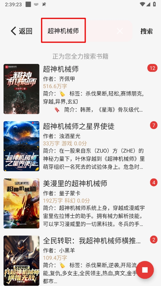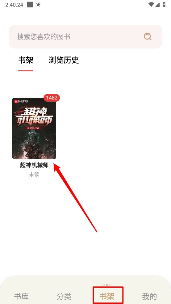 在主页点击上方的搜索框,输入书名进行搜索小说。