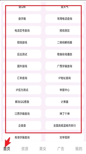 首页向下滑动,还有计算器、查询工具、短信接码等多种功能,一键点击就能使用。