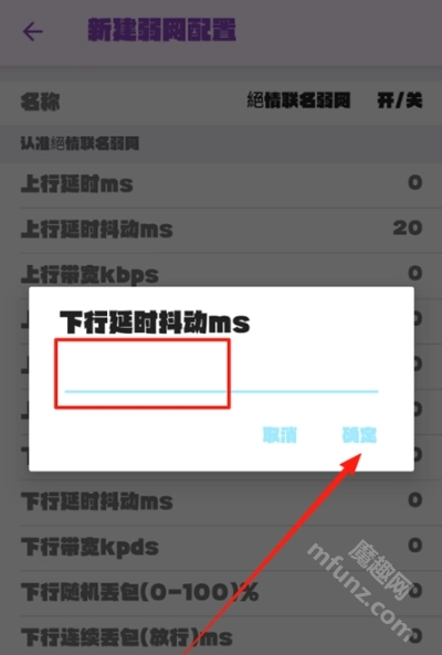进入新建弱网配置页面,按照实际需求设置各项参数,设置完成后点击保存按钮即可。