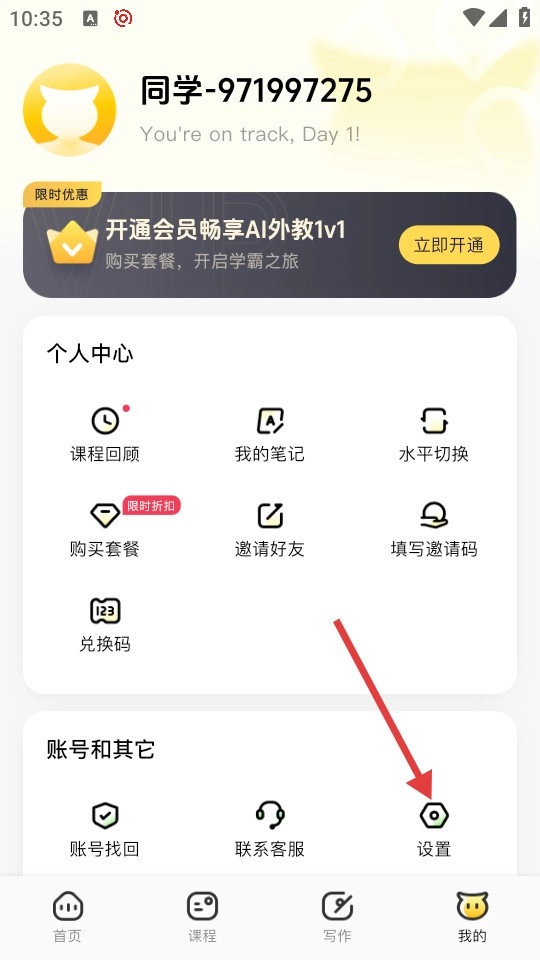在个人中心页面里,找到并点击【设置】选项,即可进入账号设置页面。