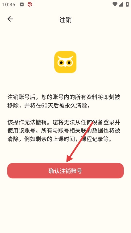 在注销确认页面里,点击【确认注销账号】按钮,就能完成账号注销操作。
