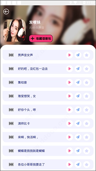 只要看到想用的语音包,点击就能查看详细内容;要是喜欢,还可以把它收藏起来,方便下次使用。