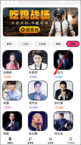 安装完成后,你可以直接在手机里启动这款吃鸡语音包变声器软件,进入软件就能看到大量的语音包资源。