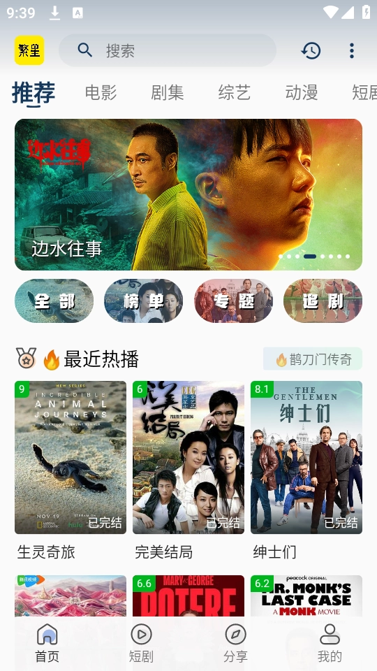 首页分享了不同类型的影视剧集,涵盖电视剧、综艺和动漫等类别。