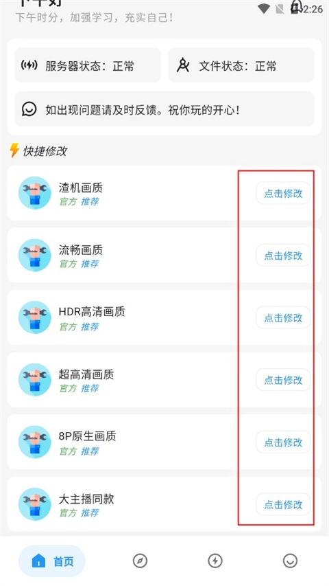 进入软件后,可在首页的快捷修改区域选择其中一个选项点击进行修改。