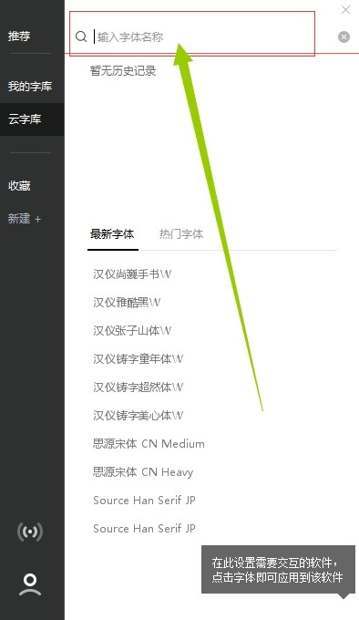 点击左上角的“搜索”按钮,输入你想查找的字体名称,就能马上找到并使用该字体了。