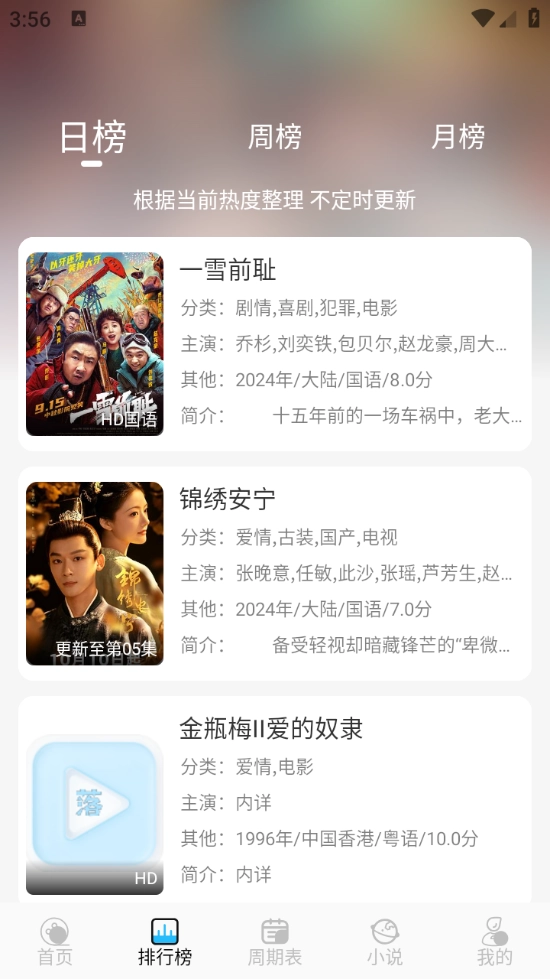 周期表主要用于查看每日更新的影视动态,方便大家随时关注自己感兴趣的影视作品。