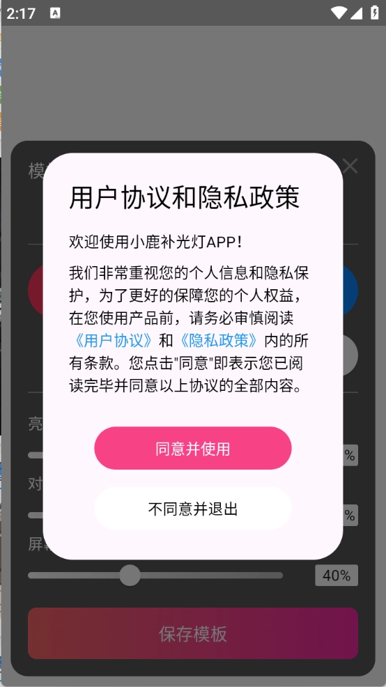 首先在本站安装好小鹿补光灯,查看并同意隐私政策与用户协议。