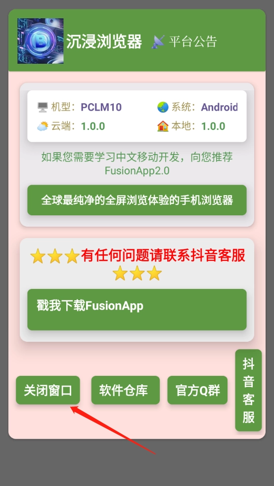 首先在本站安装好沉浸浏览器,进入该浏览器后点击“关闭窗口”按钮。