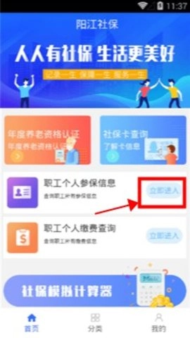 登录后,点击立即进入职工个人参保信息。