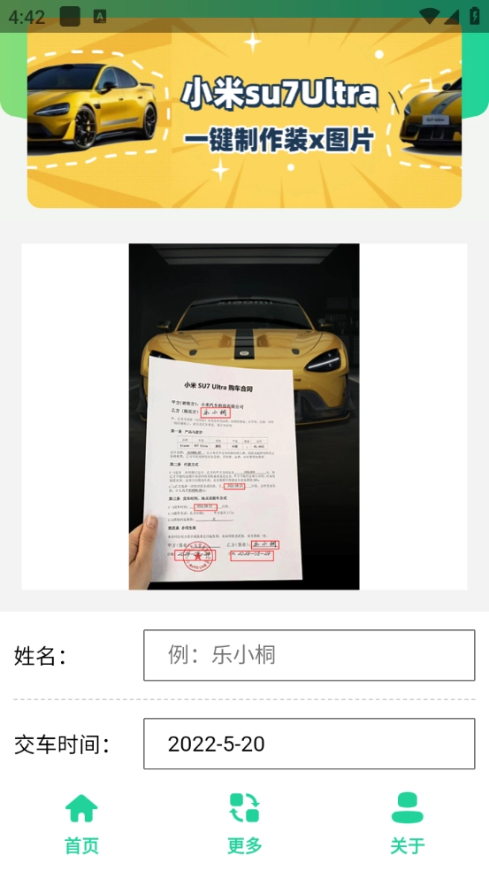 小米SU7Ultra订单生成工具,只需一键操作,就能快速生成该车型的订单截图。用户可以用它在朋友圈展示“订单”增添趣味,或是发给好友开个小玩笑,让互动更有乐趣。工具界面设计简约直观,操作流程简单易懂,新手也能迅速掌握,适合各年龄段用户体验。不过要提醒的是,生成的截图仅可用于娱乐场景,严禁用于任何违法违规的活动。