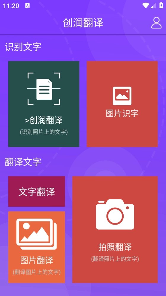 首页页面提供了多种翻译方式,既可以通过扫描识别来完成翻译,也支持手动输入内容进行翻译。