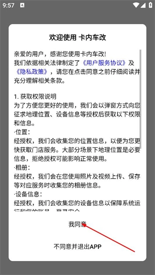 在阅读完用户服务协议与《隐私政策》后,点击弹窗里的“我同意”按钮。