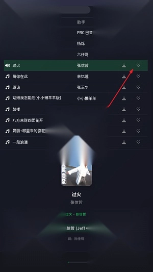 进入米兔音乐应用后,挑选你喜爱的音乐,接着像图中展示的那样点击爱心图标。
