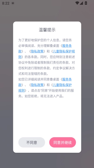 打开,在弹出来的温馨提示页面中,点击同意并继续。