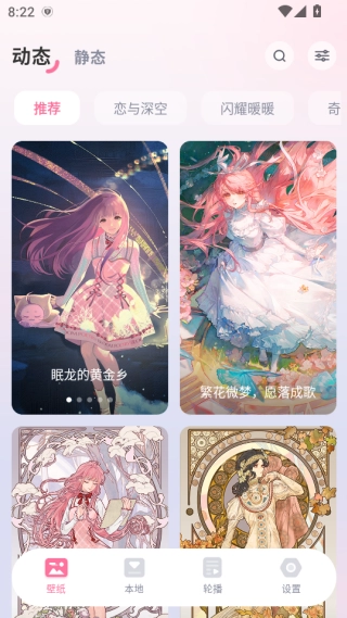 可以将喜欢的壁纸到本地,支持加入轮播。