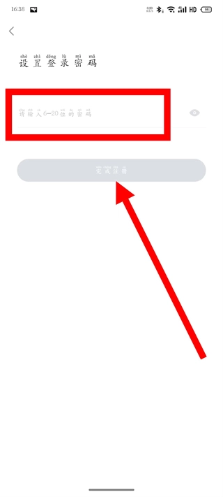在登录密码设置页面,输入6至20位的密码后,点击“完成注册”按钮,即可完成注册流程。