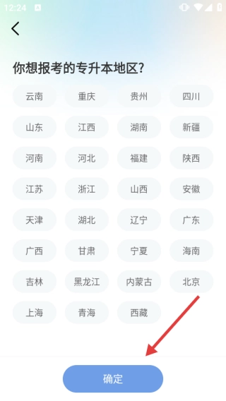 打开应用后,挑选你打算报考的地区,接着点击【确定】按钮,这样就完成地区选择了。