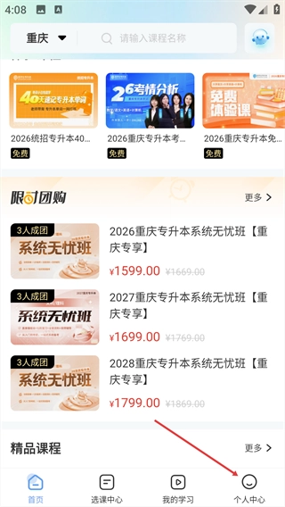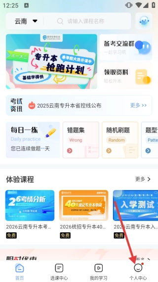 进入应用首页后,点击底部右下角的【个人中心】按钮,即可切换至个人中心界面。