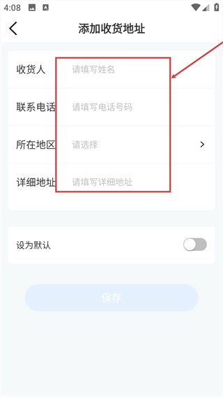 请按顺序填写收货人姓名、联系电话、所在地区以及详细地址等信息,即可完成收货地址的添加流程。