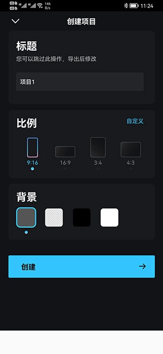 调整标题、比例和背景参数,待所有设置确认无误后,点击“创建”按钮,就能进入对应的编辑界面。