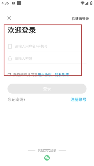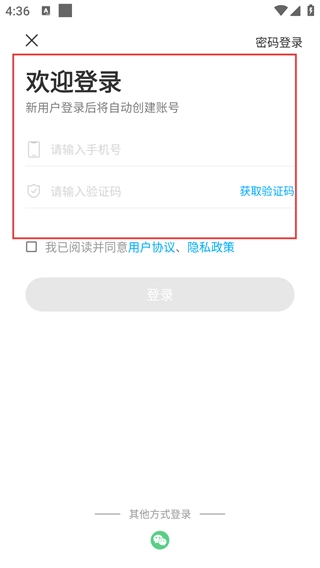 切换到密码登录的界面,在“请输入用户名/手机号”和“请输入密码”的输入框中填写对应信息,然后点击“登录”按钮。